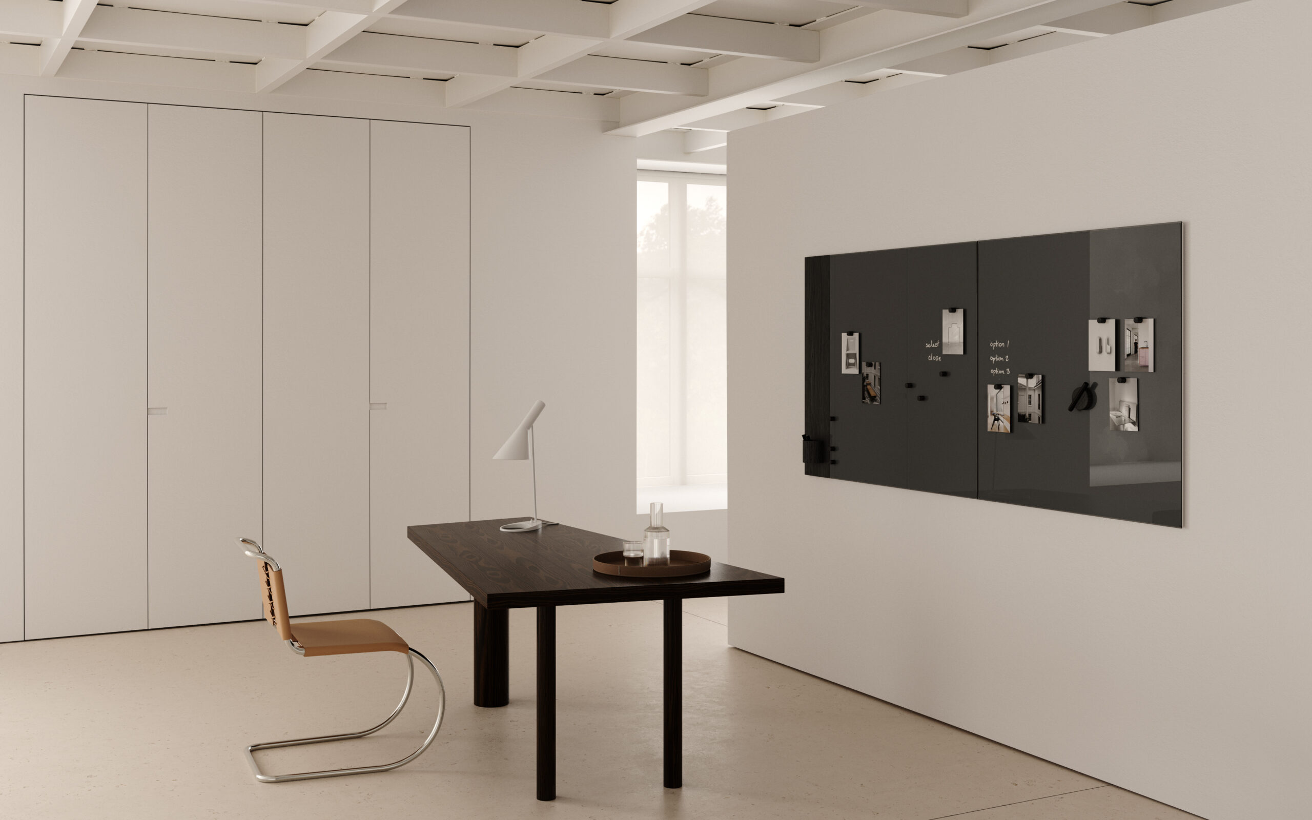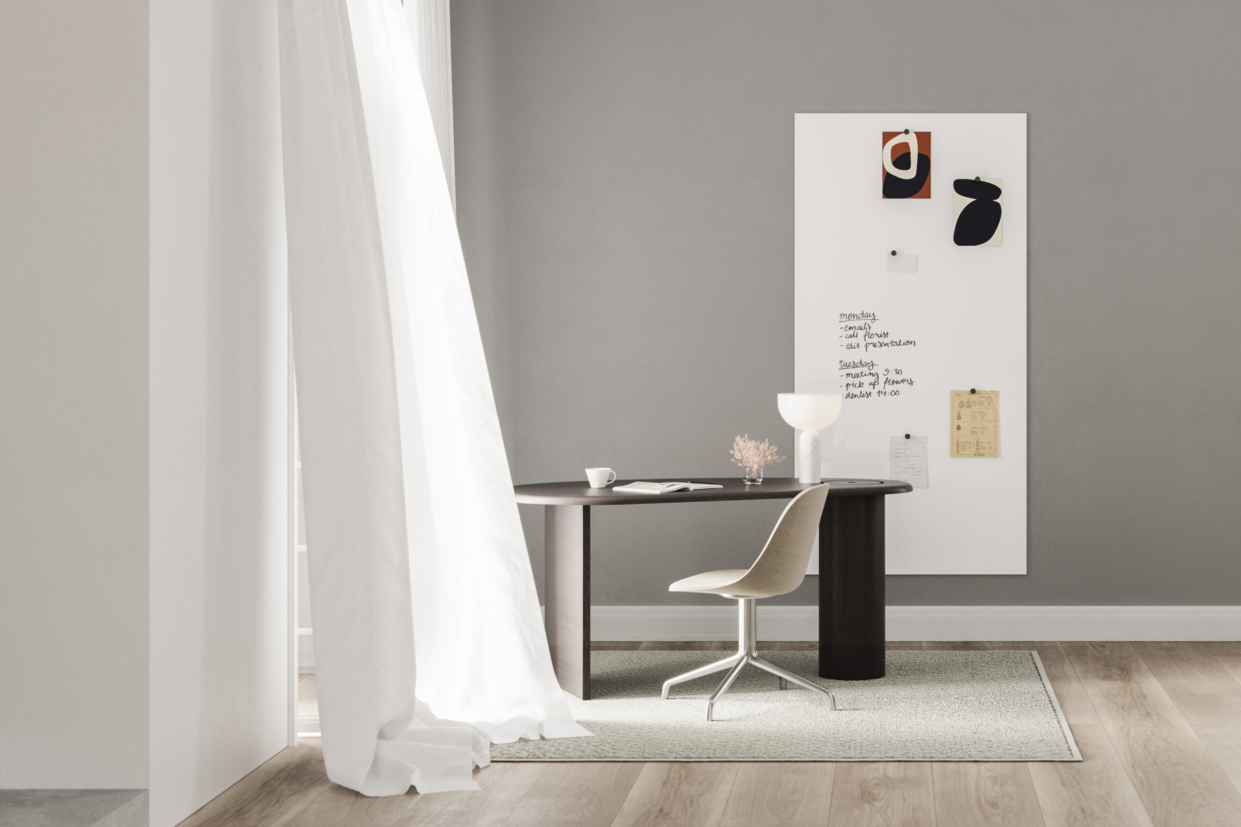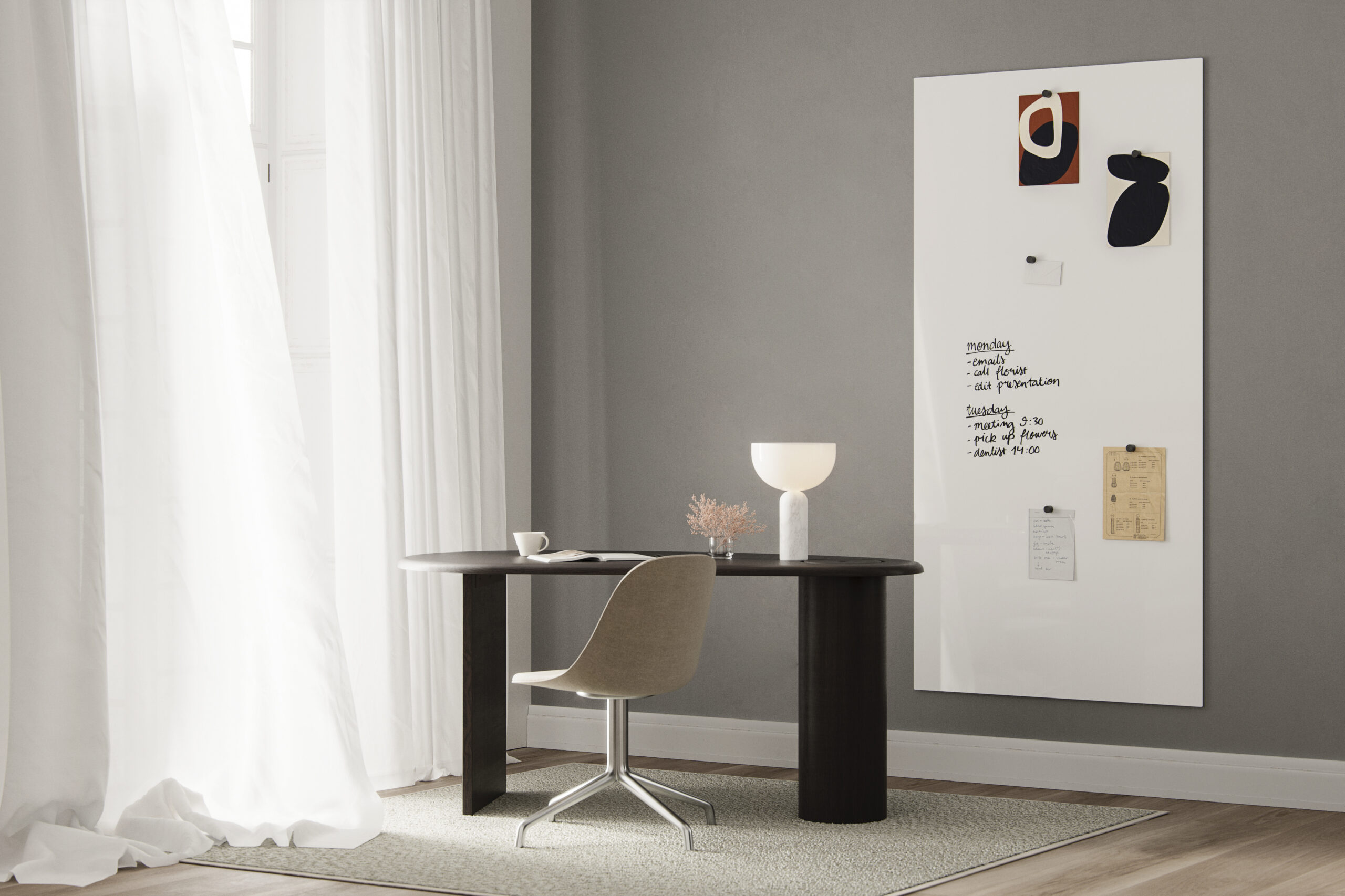 Hos M Office tilbyder vi design fra CHAT BOARD – specialister i håndlavede glastavler og interiørløsninger, hvor funktionalitet møder skandinavisk æstetik.