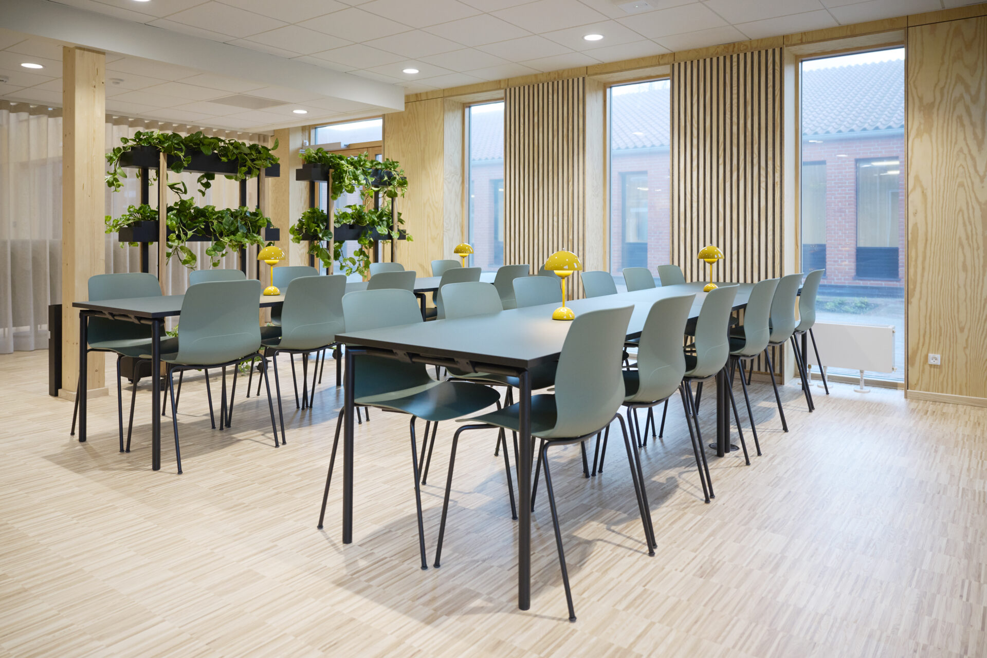 Efterskoler og kollegier rummer ofte flere funktioner i de samme arealer. Derfor tænker vi fleksibilitet ind fra start – uanset om det handler om loungeområder, studiepladser, spisestuer, fælles køkkener eller opholdsrum. Med de rigtige materialer og møbler kan rummene bruges aktivt i hverdagen og stadig fremstå pæne mange år frem.