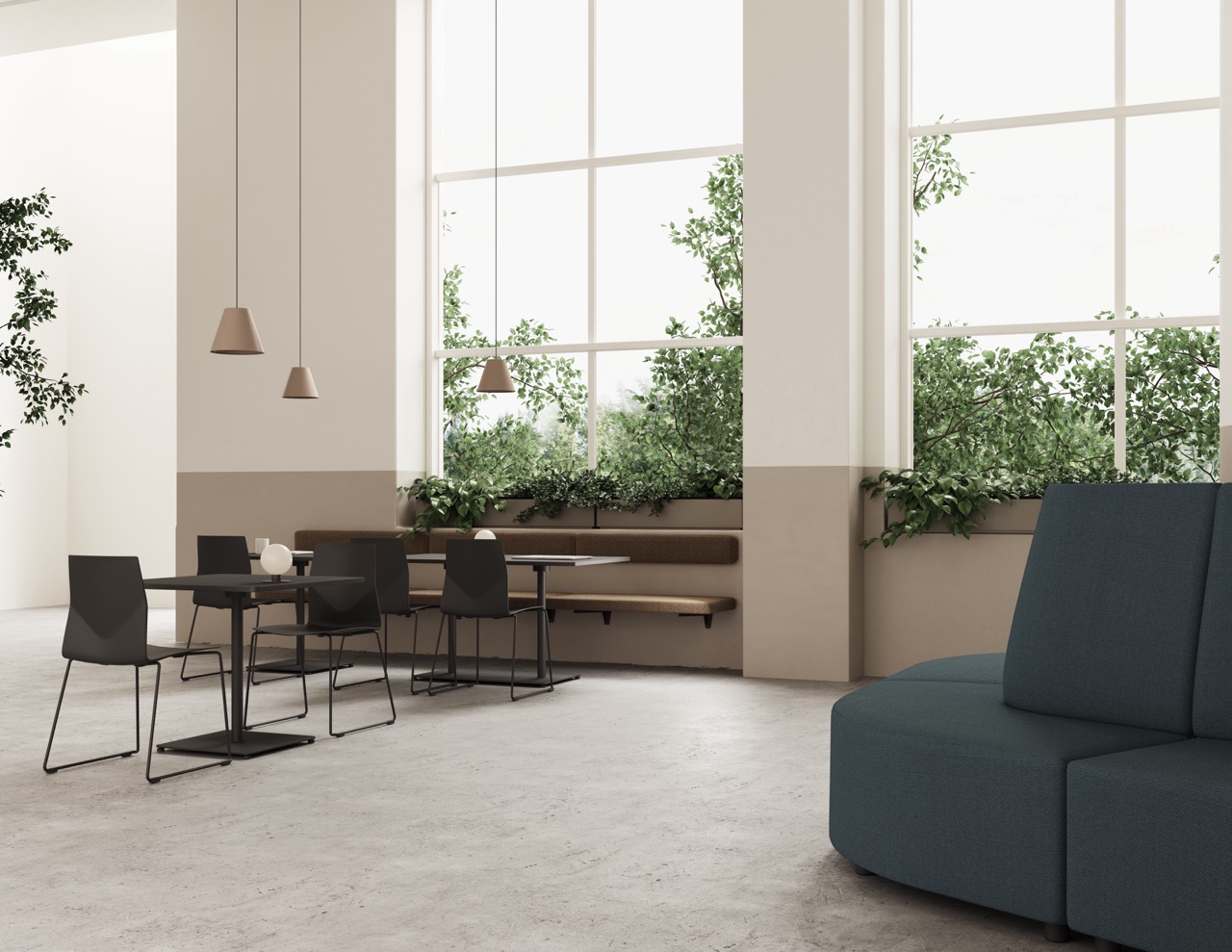 Kantinen behøver ikke kun være et rum til frokostpausen. Med de rigtige kantinemøbler kan I skabe et rum, der også fungerer til uformelle møder, korte arbejdspladser, workshops og fælles arrangementer i løbet af dagen.